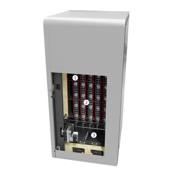 Ein integriertes System sorgt für die kontinuierliche Reinigung der Rauchkanäle und gewährleistet dadurch eine maximale Heizleistung.